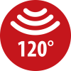 • De bewegingsdetector detecteert bewegingen met een detectiehoek van 120°